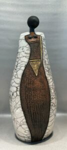 Chaque œuvre est façonnée à la main, émaillée et cuite dans son atelier et temoignent d’une recherche esthétique et symbolique profonde.