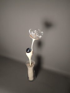 Sous sa marque Maelster, Maelle imagine des fleurs sculptées en bois et verre filé, ainsi que des luminaires. Ses œuvres invitent à la contemplation et célèbrent l’élégance des contraires : le minéral et l’organique, la densité du bois et la transparence du verre.