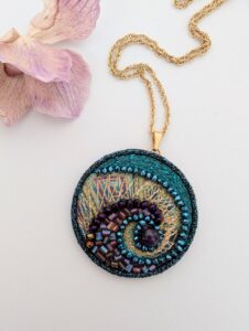 Miliperlie ou quand la broderie se fait bijou ! Marie-Catherine LAM a choisi de faire de la broderie un art à porter. Dans son atelier d’Ivry sur Seine elle associe les gestes précis de la broderie classique à l’aiguille aux techniques raffinées du crochet de Lunéville pour créer des bijoux uniques. Chaque pièce prend forme patiemment, au fil des points, pour révéler des motifs délicats et des harmonies de couleurs subtiles.