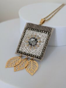 Originalité, finesse et finitions soignées sont au cœur de son travail. Colliers, broches, boucles d’oreilles… chacun de ses bijoux raconte une histoire et porte l’empreinte de son savoir-faire.